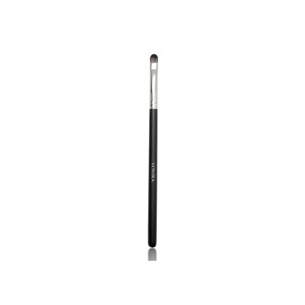 A thin brush features a small and slightly tapered flat brush head. Best used to gently apply cream or liquid products such as concealer to small areas of the face.